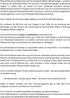 Etwa ab Mai wird es (leider) eine rund 16-monatige Großbaumaßnahme geben - vor allem im Bereich der Saarlouiser Straße. Wir versuchen, die Beeinträchtigungen so gering wie möglich zu halten, aber wir werden sie nicht vollständig vermeiden können. Möglicherweise wird das ein Vorgeschmack auf das sein, was uns im Zusammenhang mit der Sanierung des Brückenbauwerks 99 in Fraulautern und dem sich daraus ergebenden Umleitungsverkehr rund um den bisherigen Rathauskreisel erwartet.