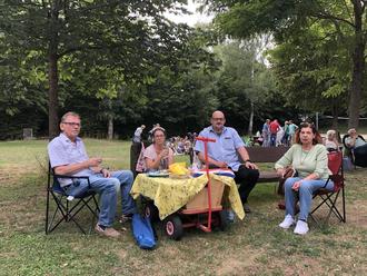 „Ich bin überrascht, wie viele Leute trotz FKK-Veranstaltung doch noch mit so vielen Kleidern hier sitzen“;) – mit diesen Worten eröffnete Bürgermeister Jörg Wilhelmy die Veranstaltung am Samstag. Aus dem angekündigten Duo „Richmen“ war ein Trio geworden – Lukas Reichmann wollte sich das Heimspiel der Band nicht entgehen lassen und hat kurzfristig für Verstärkung gesorgt. Mit bekannten Songs, die zum mitsingen- und wippen animierten, haben die Musiker dem Publikum einen schönen Abend bereitet. Viele Musikinteressierte hatten es sich auf ihren Klappstühlen gemütlich gemacht – manche hatten sogar Tische und Tischdeko mitgebracht. Bekannte Songs, schönes Ambiente, eine kultige LKW-Bühne, gutes Wetter und nicht zuletzt eine tolle Stimmung – ein gelungener Mix, der nach Wiederholung im nächsten Jahr „schreit“.