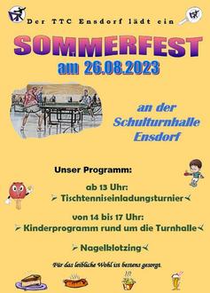 Am Samstag, 26.08.2023, lädt der Tischtennisclub zu seinem alljährlichen Sommerfest ein. Auch in diesem Jahr bietet er wieder ein Mitmachprogramm für alle Tischtennisfans – oder die, die es noch werden wollen, an.