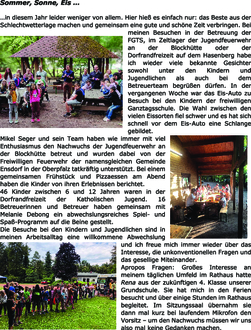 …in diesem Jahr leider weniger von allem. Hier hieß es einfach nur: das Beste aus der Schlechtwetterlage machen und gemeinsam eine gute und schöne Zeit verbringen. Bei meinen Besuchen in der Betreuung der FGTS, im Zeltlager der Jugendfeuerwehr an der Blockhütte oder der Dorfrandfreizeit auf dem Hasenberg habe ich wieder viele bekannte Gesichter sowohl unter den Kindern und Jugendlichen als auch bei dem Betreuerteam begrüßen dürfen. In der vergangenen Woche war das Eis-Auto zu Besuch bei den Kindern der freiwilligen Ganztagsschule. Die Wahl zwischen den vielen Eissorten fiel schwer und es hat sich schnell vor dem Eis-Auto eine Schlange gebildet.