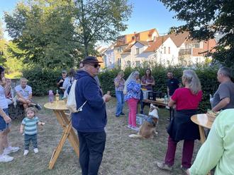 Unterwegs wurden an den Haltestellen kleine Rätsel gelöst, sodass die Wanderung für Groß und Klein spannend und abwechslungsreich gestaltet war. Den Abschluss bildete ein gemütlicher Umtrunk mit kühlen Getränken und einem kleinen Snack im Park hinter dem Rathaus.