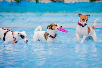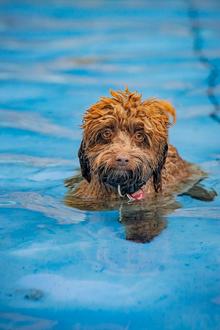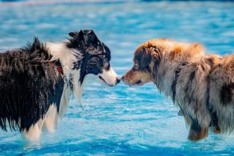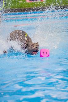Es herrschte beste Stimmung, und die Hunde nutzten die Gelegenheit, im Nichtschwimmerbecken zu toben, zu schwimmen und nach Herzenslust zu planschen. Und während die Tiere ausgelassen spielten, verfolgten ihre Halterinnen und Halter das bunte Treiben entspannt vom Rand aus.