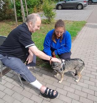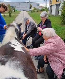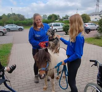 Am 17.09.2024 erhielten die Bewohner der Seniorenresidenz Lindenpark Tierischen Besuch von dem Förderverein "Ehrensache" e.V., die zwei Hunde und zwei Therapieponys dabeihatten.