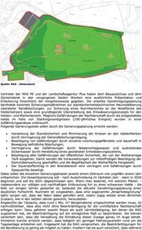 | • | Beseitigung von Gefährdungen durch einzelne rutschungsgefährdete und dauerhaft in Bewegung befindliche Böschungen, |