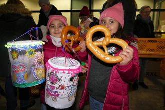 Die Brezeln werden nach der offiziellen Martinsfeier für alle Kinder an zwei Ausgabestellen im Bereich der Großsporthalle (gegenüber dem Martinsfeuer) ausgegeben.