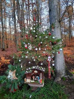 Die fünf Engelein Rita, Herta, Sieglinde, Elvira und Gertrud schmückten im Ensdorfer Wald (Nähe Campingplatz), wie jedes Jahr traditionell ihren Weihnachtsbaum und stellten eine schöne Krippe dazu.