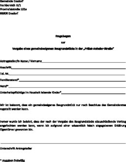 | - | nicht über ein selbst nutzbares, bedarfsgerechtes Wohnhaus oder Wohnbaugrundstück in der Gemeinde Ensdorf verfügt (schriftliche Erklärung). |