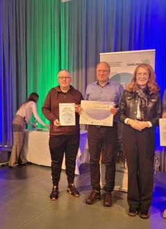 Ausgezeichnet wurden beim diesjährigen Stadtradeln Ensdorfer Kommunalparlamentarier/innen aus den Fraktionen Bündnis 90/Die Grünen und SPD. Sie hatten sich als eines der stärksten Gemeinderat-Teams saarlandweit den 3. Platz in der Kategorie „Bestes Kommunalparlament“ erradelt. Im Rahmen einer kleinen Feierstunde im Saarbrücker Schloss nahmen Dietrich Bickelmann und Dieter Rust stellvertretend für ihre Teams einen Scheck in Höhe von 500 € entgegen. Mitglieder der beiden Gemeinderatsfraktionen sind übrigens schon seit dem ersten Stadtradeln im Jahr 2016 mit dabei und hatten bereits 2019 einen 2. Platz als bestes Kommunalparlament belegt. Das Preisgeld, das mir dieser Tage im Rahmen der Jahresabschlusssitzung überreicht wurde, wird die Gemeinde im Sinne des Stadtradelns zur Förderung des Radverkehrs - etwa zur Anschaffung zusätzlicher „Radparker“ - verwenden.