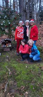 ist heiter, wir sind wieder ganz begeistert, den Tannenbaum im Ensdorfer Wald zu schmücken und die schöne Krippe aufzustellen.