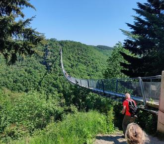 Heute entdecken wir die spannenden Ecken der Eifel! Wir beginnen den Tag mit einer Reise zu einer der längsten Hängeseilbrücken Deutschlands, der Geierlay. Nachdem wir diese bezwungen haben besuchen wir den familiengeführten Tiererlebnispark Bell, in dem es etwas entspannter zugeht. Neben einem Freigehege für Äffchen, einer Greifvogel- und Eulenflugshow und Tierfütterungen könnt ihr hier auch eine Filmvorführung im parkeigenen 4D-Kino mit Gerüchen und Bewegungseffekten erleben.