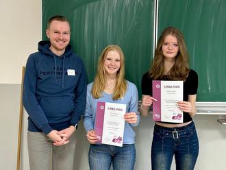 Hanna Schelkle und Hannah Lohfink, beide aus der Klasse G10, erreichten hierbei den 24. und 31. Platz in der Jahrgangsstufe 10 in der Landesrunde der Schnupper-Chemieolympiade für die Mittelstufe, „Chemie - die stimmt!“.