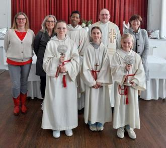 Anknüpfend an die Heilungsgeschichten in Lesung und Evangelium betonte Pfarrer Ulrich Piesche in seiner Predigt, dass Jesus auf jeden einzelnen Menschen zugehe. Er wolle jedem in seiner Persönlichkeit und individuellen Not begegnen. So ermögliche er dem Kranken seine Not zu bekennen. Im Evangelium werde geschildert, dass der Kranke den Worten Jesu glaube und so das Wunder geschehe, dass er aufsteht und geheilt sei. Jesus gehe ganz bewusst an die Ränder der Gesellschaft, wo niemand hingehe. Er suche das Verlorene, Verwundete, Kranke, Ausgestoßene und Vereinsamte, um neue Hoffnung, Liebe, Gesundheit und Heil zu bringen. Für Jesus gebe es keine hoffnungslosen Fälle, denn für ihn sei jeder Mensch wertvoll und wichtig. Jesus wolle für jeden Menschen ein gelungenes Leben. Er sei gegenwärtig gerade in schweren Stunden. Von Christus könne jeder lernen, das eigene Leiden, die Mühsal des Alters, die Krankheit, Einsamkeit und Gebrechen bis hin zum Tod anzunehmen. Das Sakrament der Krankensalbung solle die Menschen aufrichten und stärken. Diesen Auftrag führten jetzt sie als Priester aus, indem sie für die Anwesenden beteten, ihnen die Hände auflegten und sie mit dem heiligen Öl salbten. Pater Binesh und Pfarrer Ulrich Piesche gingen durch die Reihen und salbten jede einzelne Person mit den Worten: „Durch diese heilige Salbung helfe dir der Herr in seinem reichen Erbarmen, er stehe dir bei mit der Kraft des Heiligen Geistes“.