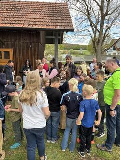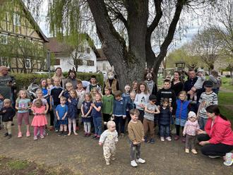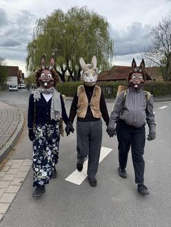 Am Ostermontag zog es zahlreiche Kinder mit ihren Familien auf den Spielplatz nach Grüsselbach, wo sie gespannt auf den Besuch der Osterhasen warteten. Pauline Heine hieß die kleinen und großen Gäste herzlich willkommen, bevor sich die Kinder voller Vorfreude auf die Suche nach den Hasen begaben. Lautstark riefen sie "Osterhasen!" - und tatsächlich: Kurz darauf tauchten drei fröhliche Hasen hinter der Kirche auf und wurden mit großem Jubel empfangen.