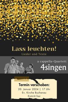 | 17.00 Uhr | Konzert mit dem Quartett „4singen“ in der Kirche Buchenau |
