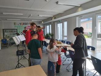 Am Samstag, 06.05.2023, konnten interessierte Grundschülerinnen und Grundschüler endlich wieder die Gelegenheit nutzen, verschiedene Instrumente auszuprobieren, um herauszufinden, ob sie gerne eines dieser Instrumente erlernen möchten. Die Bandbreite war groß: Sämtliche Blech- und Holzblasinstrumente, Gitarre, Schlagzeug, Klavier und Geige konnten nach Herzenslust ausprobiert werden.