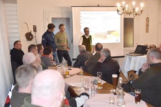 Sehr zahlreich waren die Teilnehmerinnen und Teilnehmer aus den Kommunen und der Landwirtschaft, sowie Jäger, Naturschützer und interessierte Bürger in das Gasthaus Adler in Rasdorf gekommen. Die Veranstaltung soll Anstoß geben, um auf die besondere Bedeutung der Feldwege als Vernetzungsinstrumente im Biosphärenverbund hinzuweisen. Landwirtschaftlich genutzte Räume seien Heimat für unzählige Tier- und Pflanzenarten, so die beiden Fachreferenten. Feldwege seien nicht nur Verbindungswege, sondern wertvolle Lebensräume. Deshalb hätte ihrer Erhaltung eine große Bedeutung für die biologische Vielfalt. Flächenzusammenlegungen und die Größe der landwirtschaftlichen Maschinen führten zu einer Landschaftsveränderung, die mit einem massiven Rückgang der Artenvielfalt verbunden sei. An Beispielen zeigten die Referenten den Rückgang auf. So blieben beispielsweise für Feldlerche und Rebhuhn nur die Wegraine zur Brut und Aufzucht der Jungtiere. Deshalb sei es wichtig, die ökologische Funktion von Feldwegen durch regelmäßige Pflege und den richtigen Zeitpunkt zu erhalten, betonte Elmar Herget. Die kommunalen und privaten Eigentümer der Feldwege hätten hier eine besondere Verantwortung. Johannes Knab zeigte diese an Beispielen aus der Praxis auf. In der anschließenden Diskussion kamen Landwirte und Jäger zu Wort. Sie diskutierten lebhaft über die Herausforderungen und Chancen bei der Feldwegpflege und betonten die Wichtigkeit zur gemeinsamen Zusammenarbeit aller Beteiligten.