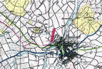 Abbildung: Ausbaustrecke im Gemarkungsgebiet Rasdorf rot dargestellt.