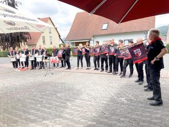 Ich möchte diesen Auftritt nutzen, um unseren langjährigen 1. Vorsitzenden Eberhard Günther für seine Jahrzehnte lange sehr gute Arbeit zu danken. Er war von Anfang an dabei und hat den Fanfarenzug geführt und alles dafür getan, damit die Abteilung Fanfarenzug der Freiwilligen Feuerwehr Rasdorf seit nunmehr über 14 Jahren besteht. Er hat sich nicht nur um die Getränke für die Proben gekümmert, sondern auch die Organisation der Workshops übernommen. Und war auch sonst immer erster Ansprechpartner, wenn es um unsere Abteilung ging.