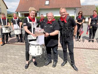 Lieber Eberhard ich darf dir für die geleistete Arbeit im Namen des Fanfarenzuges danken und dir einen kleinen Präsentkorb überreichen.