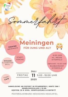 Herzliche Einladung zum gemeinsamen Mittagessen am Donnerstag, 11. September 2025 um 12.00 Uhr im Pfarrzentrum Eiterfeld. Das Essen ist kostenlos, für eine Spende sind wir dankbar. Wir bitten um telefonische Anmeldung bis 09.09.2025 unter 06672 - 388.