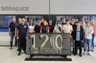Die Klasse H 8 besuchte gemeinsam mit Lehrkraft Hagen Ulitzsch und Arbeitscoach Verena Bleuel das Unternehmen Herbert Maschinen- und Anlagenbau GmbH & Co. KG in Hünfeld. Anlässlich des 120-jährigen Bestehens fand am 27.06.2025 der Tag der Ausbildung statt. Neben einer Präsentation über das Unternehmen mit Schwerpunkt der Ausbildungsmöglichkeiten fand auch ein Firmenrundgang statt. Besonders beeindruckt waren die Schülerinnen und Schüler von den technischen Möglichkeiten. Besonders die neue Drehfräsmaschine beeindruckte mit seiner Größe und seinem Gewicht.