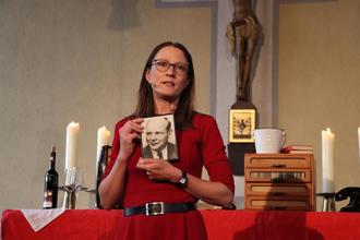 Etwa 70 Besucherinnen und Besucher konnten am 6. Juli ein bewegendes Musical in der Kreuzkirche Eiterfeld erleben. Miriam Küllmer-Vogt vermochte die Zuschauerinnen und Zuschauer schnell zu fesseln. Sie schlüpfte in die Rolle der Maria von Wedemeyer, die sich 1942 mit Dietrich Bonhoeffer verlobte, aber aufgrund dessen Inhaftierung und Ermordung nur wenig gemeinsame Zeit mit ihm haben konnte. Ihre Beziehung zueinander reifte vor allem in zahlreichen Briefen. Ihre widerstreitenden Gefühle brachte die Künstlerin so zum Ausdruck, dass das Publikum davon sehr bewegt wurde. Texte von Dietrich Bonhoeffer interpretierte sie überzeugend als Lieder, bei denen sie von Gernot Blume am Klavier begleitet wurde. Am Ende stellte sich die Frage, ob Maria von Wedemeyer wirklich Bonhoeffers „große Liebe“ war, entschied er sich doch für seine aus einem tiefen christlichen Glauben gewonnene Überzeugung und wählte nicht den Weg der Flucht aus dem Gefängnis oder dem Versuch, den Nazis gefällig zu sein. Letztlich aber blieb er nur so glaubwürdig - und Maria wusste es. Der Preis dafür war hoch.