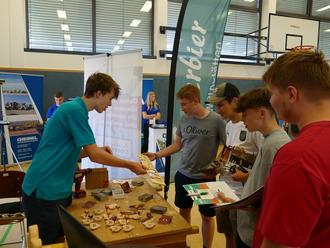 34 Unternehmen und Institutionen präsentierten sich am Freitag, dem 28. Juni 2024, in der Turnhalle unserer Schule zur diesjährigen Bildungsmesse. Hierbei konnten erste wertvolle Kontakte geknüpft werden - sei es für die noch anstehenden Betriebspraktika oder gar für einen Ausbildungsplatz. Neben den Erläuterungen zu Ausbildungs- und Studienmöglichkeiten konnten die Schülerinnen und Schüler sich aber auch an einigen Ständen praktisch ausprobieren. Organisiert wurde die Veranstaltung von unserem Arbeitscoach Frau Verena Bleuel.
