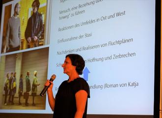 Aus dem Nähkästchen über die Dreharbeiten des Films, z.B. die Suche nach den passenden Filmkulissen, plauderte der Produzent Norbert Lechner, der eigens für die Aufführung aus Augsburg angereist war. „Wir mussten viele Szenen in Polen drehen. Dort hat das Team zum Teil noch dieselbe Nachkriegsarchitektur wie in der damaligen DDR vorgefunden.“ Wie man sich als Schauspielerin in diese Rolle hineinversetzt, obwohl man die Teilung der beiden deutschen Staaten selbst gar nicht erlebt hat, schilderte Lea Freund, die Hauptdarstellerin des Filmes. Die 26-Jährige, die derzeit am Theater in Schwerin spielt, wurde für ihre schauspielerische Leistung in „Zwischen uns die Mauer“ ausgezeichnet. Beide Ehrengäste stellten sich im Anschluss den Fragen der Besucher im US Camp.
