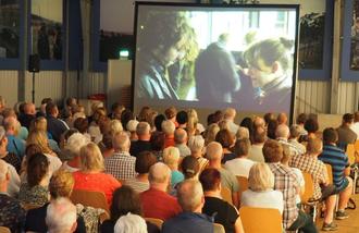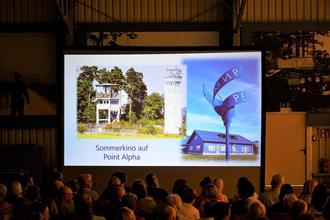 Aline Gros, wissenschaftliche Mitarbeiterin der Point Alpha Stiftung, führte die rund 150 Kinofreunde vor Filmbeginn kompakt in das Thema ein. Dazu zählte auch ein kurzer Abriss über die historische Ausgangslage, das heißt, welche Ursachen dazu führten, dass es zur Abriegelung zwischen den beiden deutschen Staaten kam. Und sie erläuterte anschaulich, warum die Point Alpha Stiftung diesen Film am authentischen Geschichtsort Point Alpha zeigt.