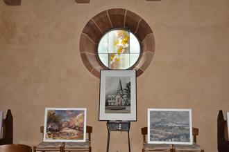 „HEIMAT“ Impressionen, lautete der Titel der Ausstellung des verstorbenen Rasdorfer Künstlers Paul Völker in der Stiftskirche der Point-Alpha-Gemeinde Rasdorf. Posthum wurde diesem damit eine große Ehre in seiner Heimatgemeinde zuteil. 75 Gemälde, Aquarelle, Kohlezeichnungen, Öl auf Leinwand, abwechslungsreich präsentiert, passten sich gut in das romanisch-gotische Innere der Kirche ein. Zudem hatte Silvia Völker Vlasanek, Schwester und Initiatorin des verstorbenen Künstlers noch weitere 44 Gemäldeblätter in Sammelmappen mitgebracht, die das umfassende künstlerische Schaffen von Paul Völker veranschaulichten.