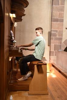 Ulla Martin, Vorsitzende des Ausschuss Familie, Jugend, Kultur der Point-Alpha-Gemeinde eröffnete die Ausstellung. Sie freue sich, dass es gelungen sei, die Werke des einheimischen Künstlers in so großer Zahl der Öffentlichkeit zu präsentieren. Der ehemalige Rasdorfer Bürgermeister Berthold Jost schilderte in kurzen, aber eindrucksvollen Sätzen die Vita von Paul Völker, dessen künstlerisches Schaffen verkannt und sogar oft belächelt worden sei. Nach Abitur und Bundeswehr sei Paul Völker erkrankt und habe sich der Malerei gewidmet. In der Begegnung mit dem Hünfelder Künstler Jürgen Blum habe dieser die kreativen Fähigkeiten von Paul Völker erkannt und systematisch gefördert. Dadurch sei zwischen beiden eine Freundschaft entstanden, die sich gegenseitig befruchtet habe. Paul Völker hat jedoch seinen eigenen Stil entwickelt, der sowohl seine Heimatliebe als auch seine emotionale Befindlichkeit widerspiegelt. Eines seiner ältesten Bilder zeigte Silvia Völker-Vlasanek. Bunter Blumenstrauß in Vase, Öl auf Leinwand, ist mit „P.K.V. 70“ signiert. Nimmt man die „70“ als Jahreszahl 1970, dann entstand das Bild wohl als Paul Völker 16 Jahre alt und noch Schüler war und zeigt die in ihm damals schlummernde Kreativität. Musikalisch umrahmte die Ausstellung, die zeitgleich mit dem 2. Rhöner Schinken- und Destillationsmark stattfand, der Rasdorfer Organist Philipp Geistlinger an der Orgel. Zu den einzelnen Themenfeldern der Gemälde spielte er virtuos einfühlsame Interpretationen. Damit bekam der visuelle Teil einen akustischen Rahmen, der zudem durch das ambiente des sakralen Raums Stiftskirche abgerundet wurde. Die Menge der Zuschauer sei widererwarten hoch gewesen, so Silvia Völker-Vlasanek. Sie wies außerdem auf die Arbeit ihres verstorbenen Ehemannes Pavel Vlasanek hin, der ebenfalls künstlerisch tätig gewesen war.
