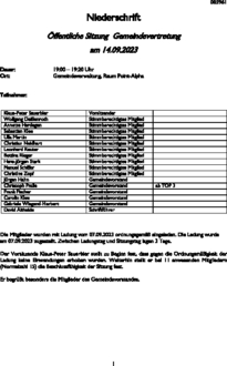 | 2. | Niederschrift am 18.09.2023 ins Ratsinformationssystem gestellt! |