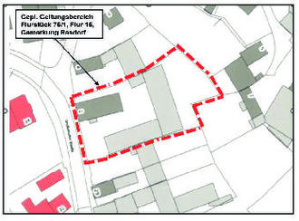 Abb.: Geplanter Geltungsbereich des vorhabenbezogenen Bebauungsplanes Nr. 18 “Großentafter Straße / Selmbach“ im Ortsteil Rasdorf