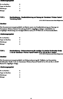 | 2. | Beschlussfassung - Gesellschaftsvertrag und Satzung der Gemeinsam Wohnen Rasdorf Verwaltung GmbH | 085347 |