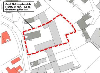 Der betroffene Geltungsbereich des vorhabenbezogenen Bebauungsplanes Nr. 18 “Großentafter Straße / Selmbach“ umfasst das Flurstück 76/1, Flur 16, Gemarkung Rasdorf.