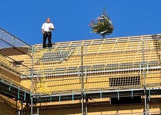 Vom Dachstuhl der 30 Einzel- und Doppelapartments verkündete der Zimmermann zunächst den Richtspruch. Nach zwei Strophen „Großer Gott wir loben Dich“ folgte eine Baubeschreibung der Architekten. Sie wiesen insbesondere auf die innovative Kombination von Massivbau und nachhaltiger Holzständer-Konstruktion hin. Außerdem hoben sie den Niedrigenergiestandard des Gebäudes hervor, welcher den Bewohnern niedrige Heizkosten bescheren wird.