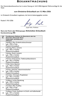 zum Ortsbeirat Grüsselbach am 15. März 2026