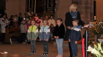 In den Fürbitten, die ebenfalls von den Kindern vorgetragen wurden, baten sie darum, dass wir alle mit der Schöpfung achtsam umgehen und die Umwelt schützen. Sie baten um ein gutes Herz, damit wir in Liebe und Frieden alle miteinander leben. Gottes Segen solle auf alle Menschen herabkommen, die auf den Feldern arbeiten und für uns die Gaben ernten. Die Fürbitten schlossen mit der Bitte, dass Gott alles in seinen Händen hält und uns beschützt.