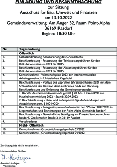 | 7. | Beschlussfassung - Energieeinsparmaßnahmen für den Winter 2022/2023 in Liegenschaften und Einrichtungen der Point-Alpha-Gemeinde Rasdorf |
