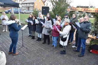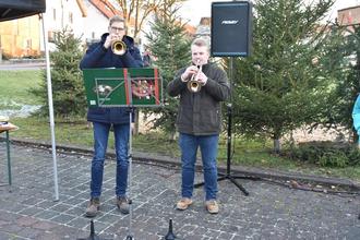 Sonnig kaltes Winterwetter lockte außerordentlich viele Besucher auf den Anger der Point Alpha Gemeinde Rasdorf. „Einstimmen auf Weihnachten“, dazu hatten der Männergesangverein „Cäcilia“ 1921 Rasdorf und Reichtum der Herzen am 1. Adventssonntag eingeladen. Den Reigen der musikalischen Beiträge eröffnete der Männergesangverein mit „Singe im Advent, Advent ist ein Leuchten, Maria durch den Dornwald ging und Zünd ein Licht für dich an“. Das Trompetenduo Johannes Balzer, Rasdorf und Philipp Flügel, Kermes erfreuten nicht nur mit den Trompetenstücken „Im Advent, Joy to the world und Trumpet Christmas“, sondern hatte gleich ausreichend Liedzettel gefertigt, so das die Gäste bei „Alle Jahre wieder, Es ist für uns eine Zeit angekommen und Wir sagen euch an den lieben Advent“ kräftig zum Trompetenklang mitsingen konnten. Einen gesanglichen Höhepunkt bot der Projektchor (Leiterin Karolina Seidel) und zeigte, dass er nicht nur im kirchlichen Rahmen eine besondere musikalische Leistung erbringt. Natürlich durfte der Kindersingkreis (Leitung Jacqueline Mathes und Stephanie Hardegen) mit seinen jungen kräftigen Stimmen nicht fehlen. Sie begeisterte unter anderem besonders mit dem Schneemann Rock ´n Roll. Verschieden Akteure aus Rasdorf boten Kerzen, Gartendesigne aus Stahl, einen Bücherstand und Weihnachtsdekoration an. Christina Weber mit ihrer Tochter Ella hatte ein Zelt mit kindgerechten Spielen und Bastelmöglichkeiten aufgebaut, in dem die Plätze begehrt waren. Auf der Kutsche von Jochen Kohn wurde man kostenlos rund um den Anger gefahren, was die Kinder, teilweise mit ihren Eltern und Großeltern, gerne in Anspruch nahmen. Mit Glühwein, Würstchen, Speckbrote, Crêpes, Kaffee und Kuchen war auch für das leibliche Wohl gesorgt. Oswald Schöpf, Vorsitzender des Männergesangvereins hatte zu Beginn alle herzlich begrüßt und dankte allen die zum Gelingen des Adventsnachmittag beigetragen hatten. Maren Herbert berichtete über ihr Projekt „Reichtum der Herzen“ in Kenia und bat um Spenden. Man habe neue Betten und Matratzen anschaffen müssen. Sie warb auch um weitere Mitglieder, die regelmäßig für den Verein spenden.