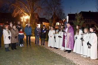 Am 1. Adventssonntag wurde der Rasdorfer Adventsweg mit der kirchlichen Segnung feierlich eröffnet. Fleißige ehrenamtliche Helferinnen und Helfer unter Leitung von Theo Lenz haben zum 8. Mal den Adventsweg auf dem Anger der Point-Alpha-Gemeinde Rasdorf aufgebaut. Bei beginnender Dunkelheit, sternklarem Himmel und frostigen Temperaturen hatten sich viele Personen eingefunden. Gleichzeitig wurde die erste Tür des „Lebendigen Adventskalender“ geöffnet und Maria und Josef für die Adventstage auf den Weg durch die Gemeinde gebracht. Initiator Theo Lenz begrüßte Pfarrer Ulrich Piesche und den Kindersingkreis (Leitung Stephanie Hardegen, Jacqueline Mathes). Mit Liedbeiträgen stimmte der Kindersingkreis auf die Segnung des Adventsweges ein. Nach der Geschichte „Der verlorene Adventszauber“, gelesen von Pfarrgemeinderatssprecherin Nadine Lenz und dem Segensgebet von Pfarrer Ulrich Piesche ging dieser mit den Messdienerinnen und Messdiener entlang der einzelnen Stationen und Figurengruppen und segnete diese mit Weihrauch und Weihwasser. Das „Vater unser“, ein Gebet und der Schlusssegen beschlossen die Eröffnung. Theo Lenz wies darauf hin, dass die 10 Tafel, mit QR-Codes versehen seien. Die 14 Stationen und die Krippe könnten täglich besucht werden, kosteten keinen Eintritt und seien bis 22 Uhr beleuchtet. Zur Finanzierung der 50 Weihnachtsbäume bat er um Spenden, Spendenquittungen sind möglich, und dankte für die bereits eigegangenen Spenden. Sein Dank galt auch der Gemeinde für die Bereitstellung des Platzes und Material für den Wegebau. Weiter Aktionen auf dem Rasdorfer Adventsweg sind an den weiteren Adventssonntagen um 17 Uhr der „Lebendige Adventskalender“, gestaltet vom Pfarrgemeinderat, am 06.12. um 17 Uhr die Ankunft des Nikolaus, für Kinder gibt es Nikoläuse und für Erwachsene Glühwein, am 08.12. um 15 Uhr das Offene Singen, am 15.12. um 17 Uhr kann das Friedenslicht in Empfang genommen werden und am 05. 01.2025 werden nach dem Sonntagsgottesdienst gegen 11.30 Uhr die Sternsinger vom Adventsweg ausgesandt. Danach wird der Rasdorfer Adventsweg wieder abgebaut.
