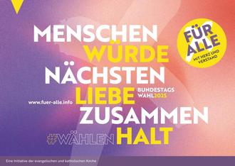 Am 23. Februar ist Bundestagswahl. Die evangelische und katholische Kirche in Deutschland bitten darum bei der Wahl zu überlegen, welche Partei in Ihren Augen am besten für die christlichen Werte einstehen. Denn Menschenwürde, Nächstenliebe und Zusammenhalt dienen jedem einzelnen Menschen und unserem gesellschaftlichen Leben zutiefst.