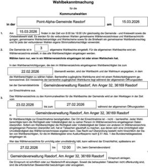 Wahlbekanntmachung Kommunalwahl 15.03.2026