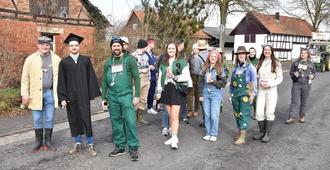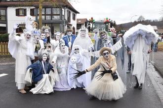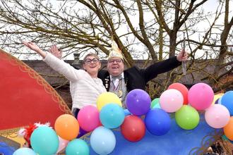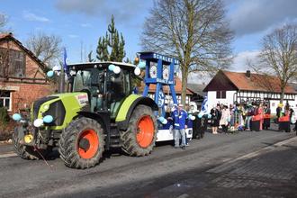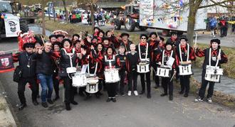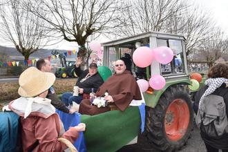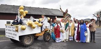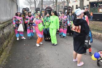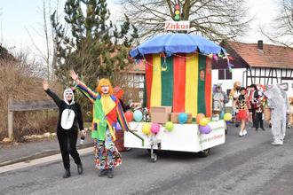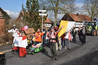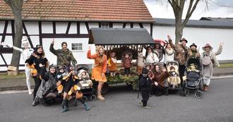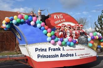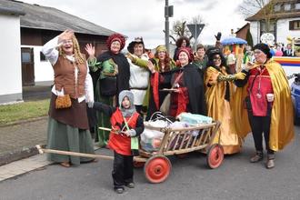 Der Wettergott war den Narren hold. Überaus zahlreich waren die Schaulustigen beim Rosenmontagszug in den kleinen Ort Grüsselbach im Hessischen Kegelspiel. Endlos die Wagenschlange, die sich von der Narrenhochburg Dorfgemeinschaftshaus Grüsselbach bergan bis zum Abzweig der Straße nach Grüsselbach von der B 84 zog. 37 Motivwagen und Fußgruppen umrundeten zweimal den mit Wimpeln geschmückten Grüsselbach und endete an der Narrhalla DGH. Helaurufe der teilnehmenden Gruppen bekamen Antwort aus den Narrenreihen, die dicht an dicht am Straßenrand standen. Orts- und Kirchenpolitik, sowie bundespolitische Themen waren Gegenstand. Bei den Fußgruppen gab es große und kleine Waldtiere, mittelalterliche Frauen, Meisterbäcker, die den Verlust des Pfarrheims beklagten, Pilgernde, Eisheilige, Römerinnen und Römer, die ebenso wie die Zirkusgruppe die Politik aufs Korn nahmen, den Elferrat, die Kolleginnen und Kollegen der Prinzessin auf Wiegand-Slides, sowie verschiedene Garden zu bestaunen. Befreundete Karnevalsgruppen waren aus der Umgebung gekommen und präsentierten mit lautstarker Musik ihre Motivwagen. Wie immer war der Wagen von Ihrer Lieblichkeit Prinzessin Andrea I. von Pilgern, Wellness & buchhalterischem Verstand und Seiner Hoheit Prinz Frank I. von Futter, Korn und Ehrenamt mit der schmucken Prinzengarde Mittelpunkt. Der Trommel- und Fanfarenzug der Freiwilligen Feuerwehr Rasdorf haute auf die Pauke und ließ die Fanfaren erschallen. Niklas Schwalbach und Kilian Spiegel, die die organisatorische und logistische Verantwortung trugen, kamen sichtlich bei dem Andrang ins Schwitzen. Präsident Matthias Förster beschrieb als Moderator die einzelnen Zugnummern. Noch lange wurde in und um die Narrhalla DGH Grüsselbach bei ausreichend Würstchen und Getränken gefeiert. In der Narrhalla zeigten die Garden ihre Tänze und mussten lautstark geforderte Zugaberufe erfüllen. Ihr Lohn war stehender Beifall und donnernde Helaurufe.