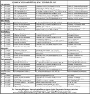 VERANSTALTUNGSKALENDER DER STADT REICHELSHEIM 2025