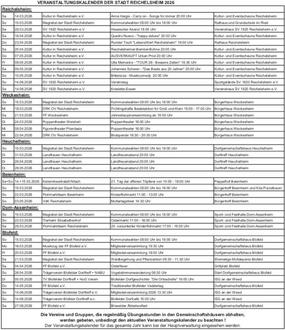 VERANSTALTUNGSKALENDER DER STADT REICHELSHEIM 2026