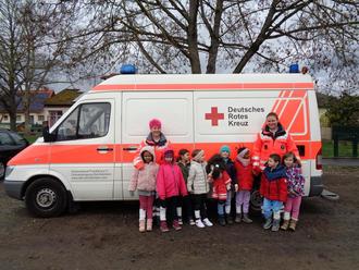 Zum Abschluss kam Herr Brendel mit dem Krankenwagen, den die Kinder sich anschauen durften.