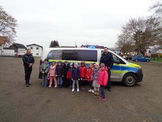 Herr Waldheim und Herr Zeifang zeigten den Kindern das Polizeiauto und erzählten von ihrem Beruf.