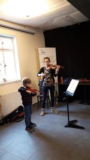 Alle Schüler haben innerhalt der letzten zwei Jahre mit dem Unterricht begonnen, sowohl die kleinen Schülerinnen und Schüler, die auf Viertel- und halben Geigen spielen, als auch die Erwachsenen, die sich spät auf das Wagnis Instrumentalunterricht eingelassen haben.