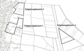 Der Geltungsbereich der Bebauungsplanänderung ist aus den unten abgebildeten, unmaßstäblichen Karten ersichtlich. Er ist in 3 Teilgeltungsbereiche gegliedert.